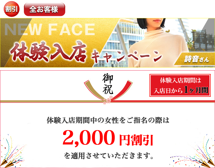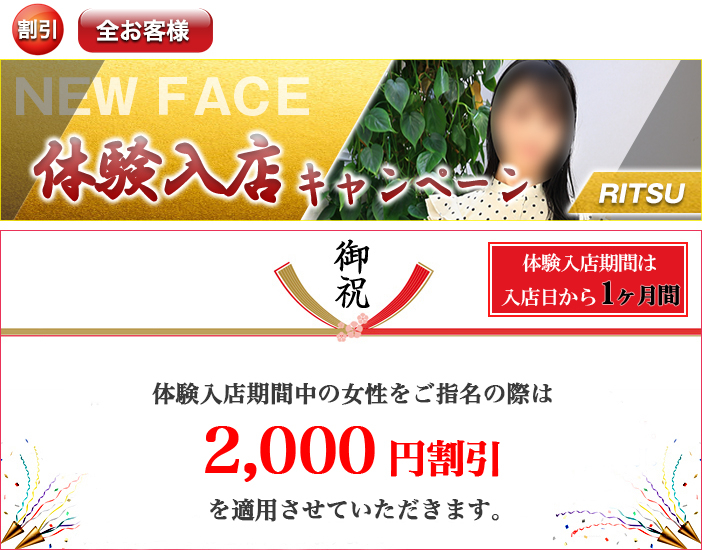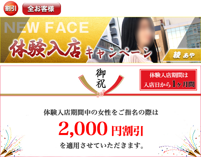 ご新規様、リピーター様に限らずご案内時には、女性による確認とお願いをさせていただく場合がございます。